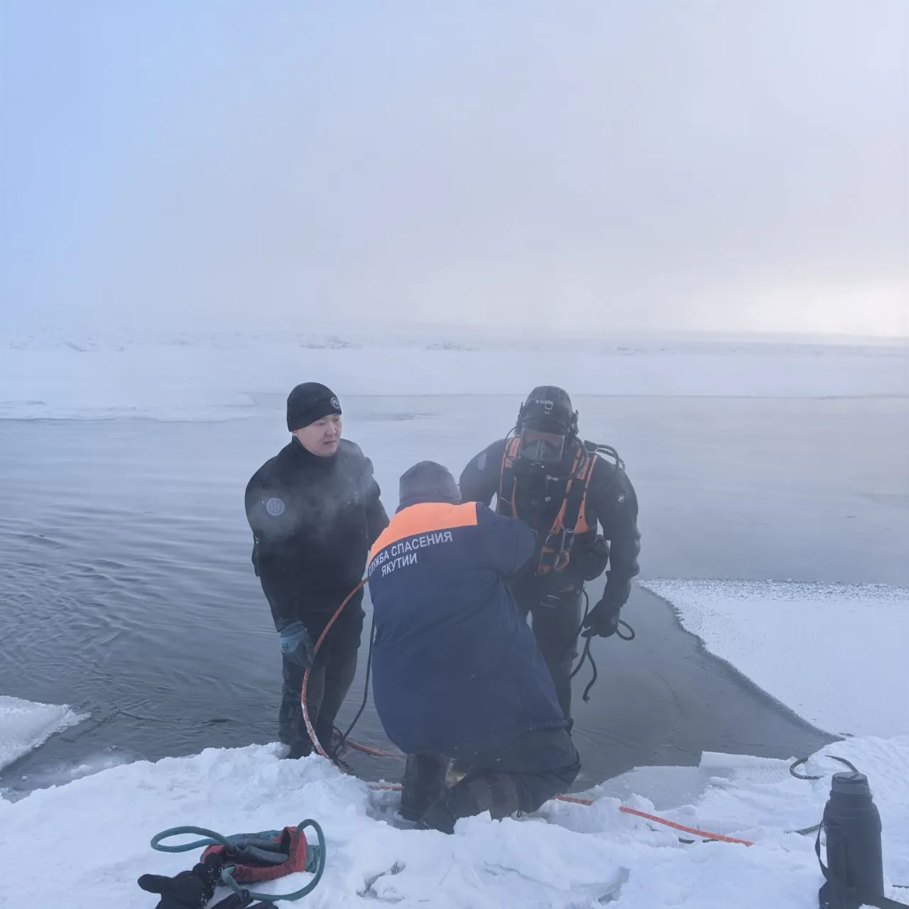 27 декабря на реке Лена произошел трагический инцидент, когда автомобиль с людьми провалился под лед. По последним данным, спасатели службы спасения Якутии извлекли четверых человек. К сожалению, один из них был найден мертвым чуть ниже места происшествия. Предполагается, что еще двое остаются в салоне автомобиля. В настоящее время спасатели и водолазы продолжают работу по извлечению машины из воды.