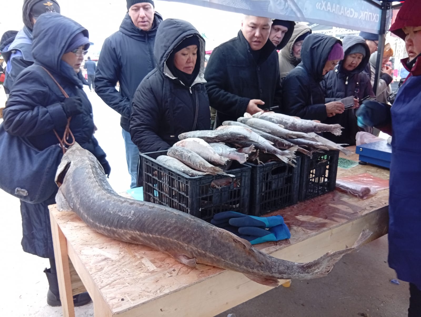 Самой дорогой рыбой, попавшейся мне на глаза, стала солёная нельма по цене 3980 рублей за килограмм. Самый крупный экземпляр рыбы – здоровенного, как поросёнок, 17-килограммового сибирского осетра – я нашёл у рыбаков из Жиганского улуса. Цена на него была 1700 рублей за кило. Одна голова такой рыбины не в каждую кастрюлю поместится. А стоимость – почти двадцать девять тысяч! Его никто и не брал за такие деньжищи. Но каждый третий задавал вопрос – с икрой ли рыба? Ведь в таком осетре должно быть, как минимум, от полутора, а может, и все три килограмма отборной чёрной икры. Сегодня такая в Москве стоит от 35 тысяч рублей за кило! Продавец разводил руками, мол, увы, нет. Покупатели отходили с таким видом, что, как будто была б с икрой, то обязательно взяли!