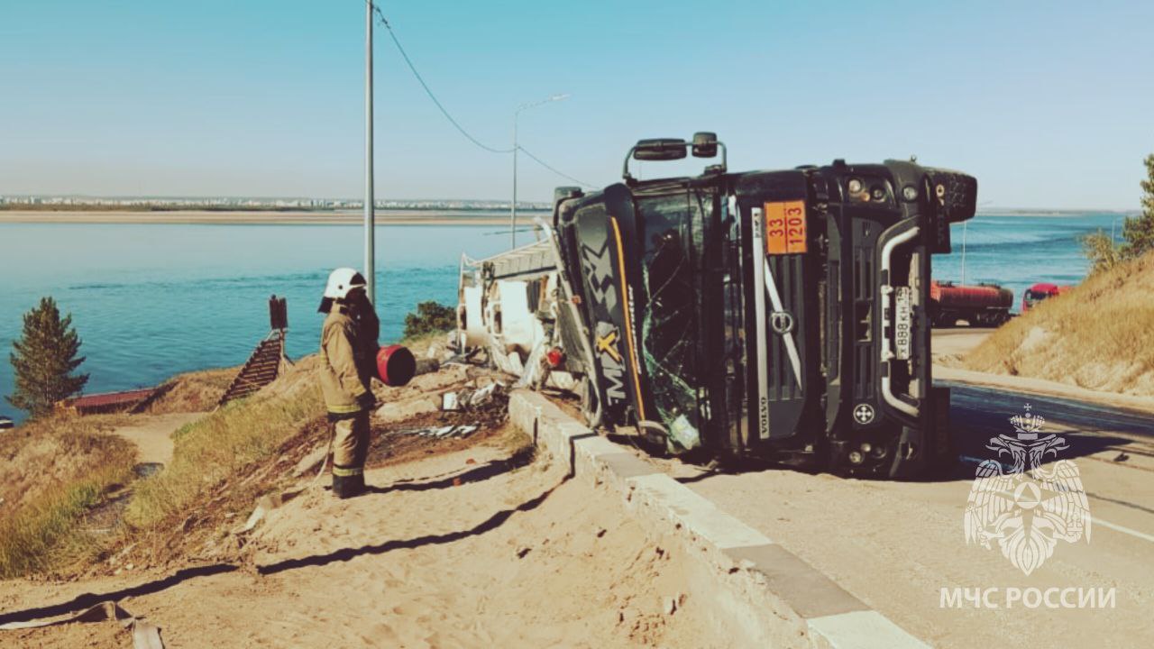 У берега реки Лена вблизи поселка Нижний Бестях опрокинулся бензовоз