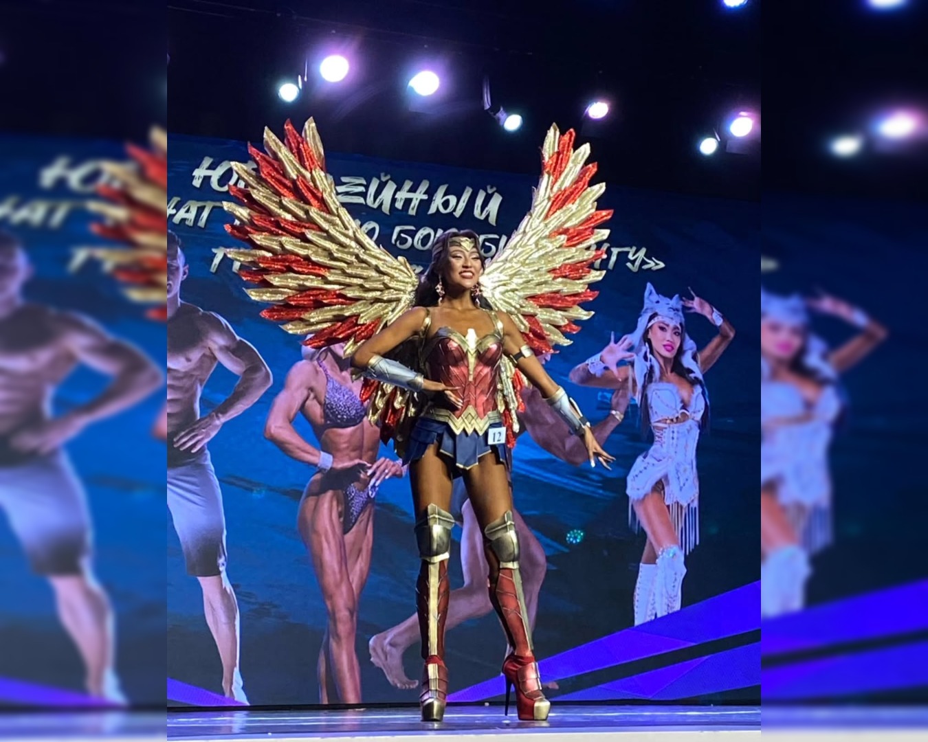 Участница в костюме Чудо-женщины произвела фурор на чемпионате по бодибилдингу в Якутске