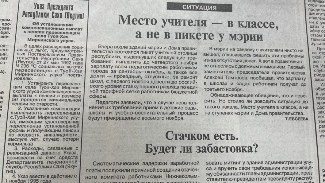 В 1995 году учителя Якутска грозили забастовкой