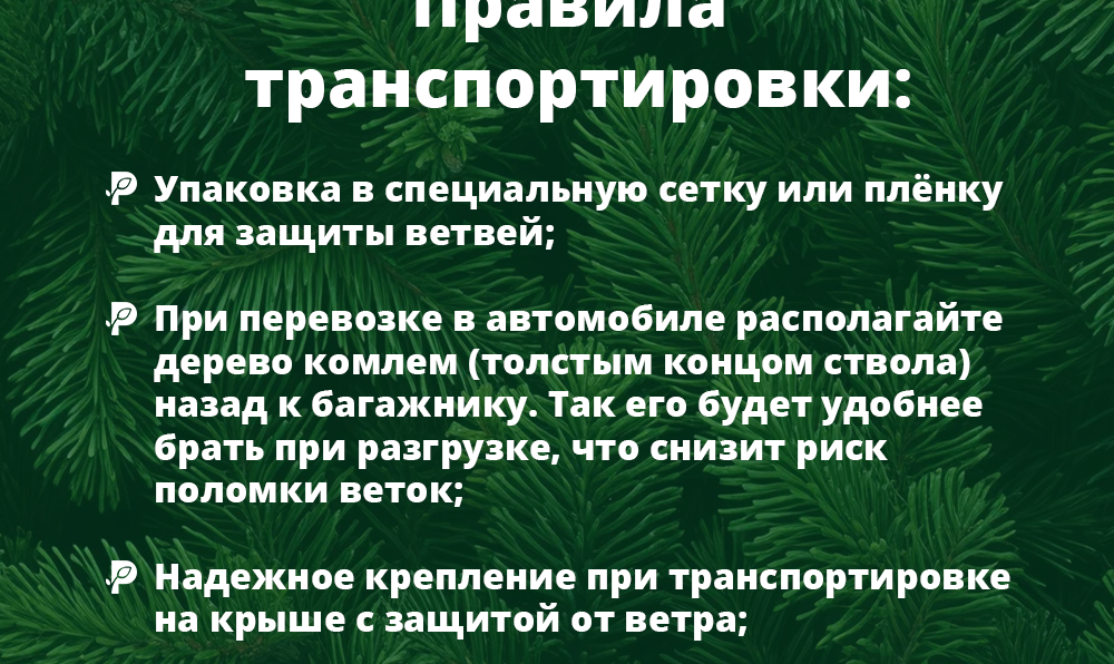 — Упаковка в специальную сетку или плёнку для защиты ветвей;