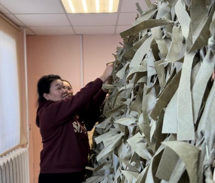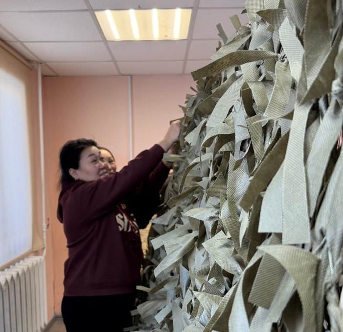 В Горном районе в свободное от работы время сотрудницы лесничества, инспекции госэконадзора, парка «Синяя», а также филиала «Якутлесресурса», плетут маскировочные сети для бойцов СВО.