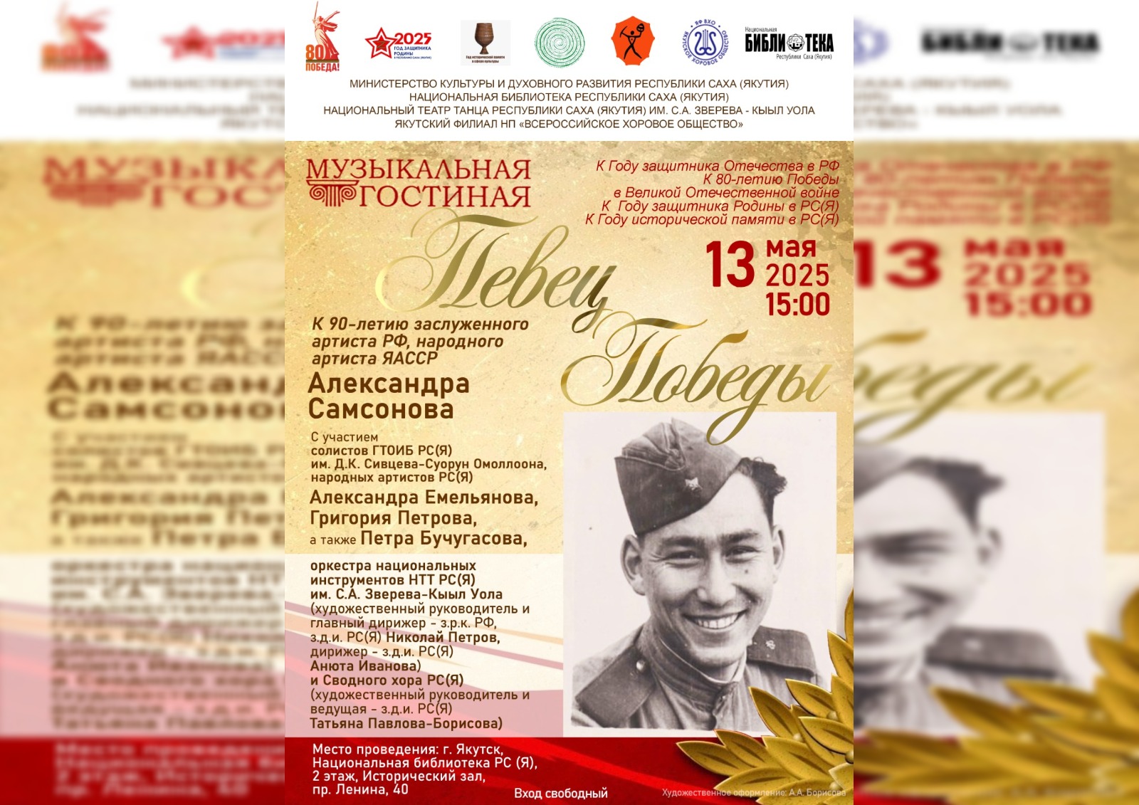 13 мая в историческом здании Национальной библиотеки пройдет концерт (12+) памяти заслуженного артиста РФ, народного артиста ЯАССР Александра Самсонова (статью о нем можно прочитать здесь).