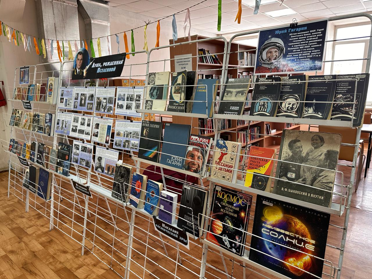 В Актив-центре Национальной библиотеки Якутии начала свою работу книжная выставка «Душа, рожденная Вселенной». Мероприятие приурочили к 91-летию со дня рождения Юрия Гагарина и Дню космонавтики.