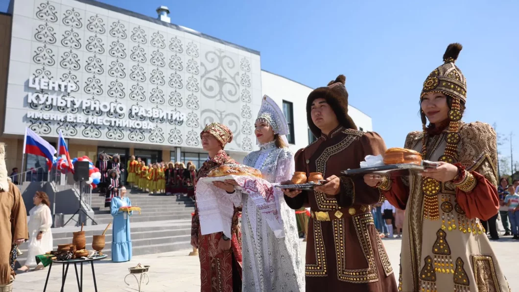 Здание, построенное на территории Мегино-Кангаласского района, стало самым крупным объектом в регионе. Его возвели на средства нацпроекта «Культура». Ил Дархан вручил руководству центра сертификат на пошив национальной одежды.