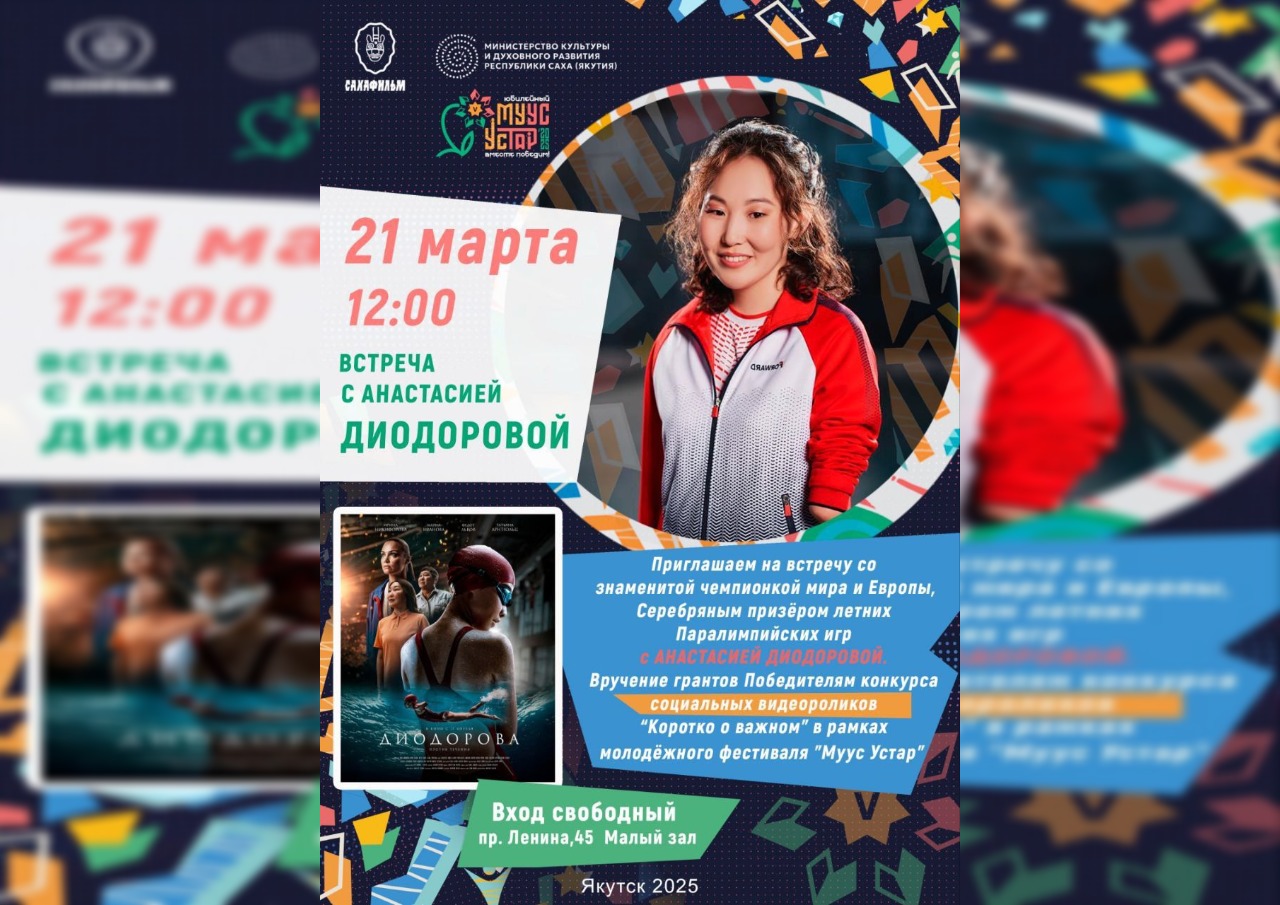 В эту пятницу, 21 марта, в здании кинотеатра «Лена» состоится встреча с чемпионкой мира и Европы, серебряным призером летних Паралимпийских игр Анастасией Диодоровой.