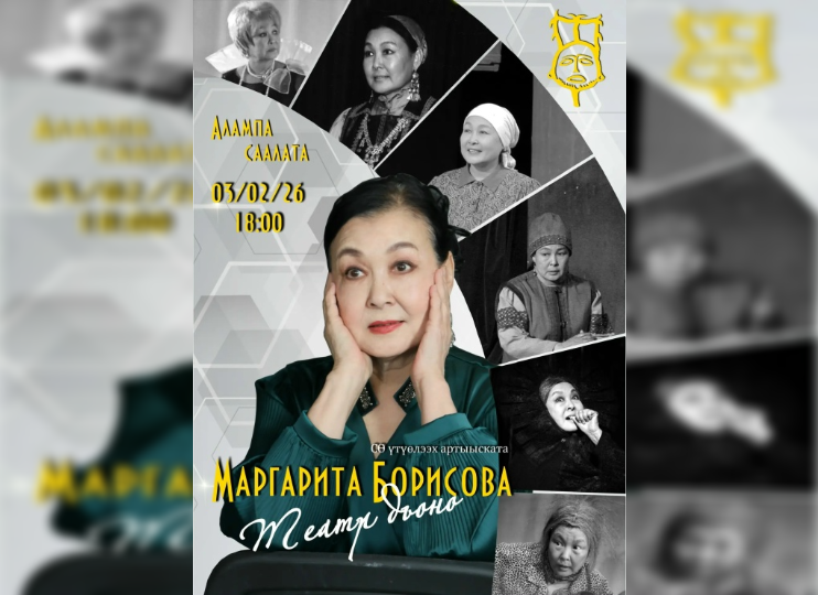 3 февраля в Зале Алампа Саха театра пройдет встреча с заслуженной артисткой РС(Я), почетным гражданином Джикимдинского наслега Нюрбинского улуса Маргаритой Михайловной Борисовой, создавшей незабываемые образы в кино (начиная с главной роли в фильме «Мааппа» Алексея Романова) и театре.