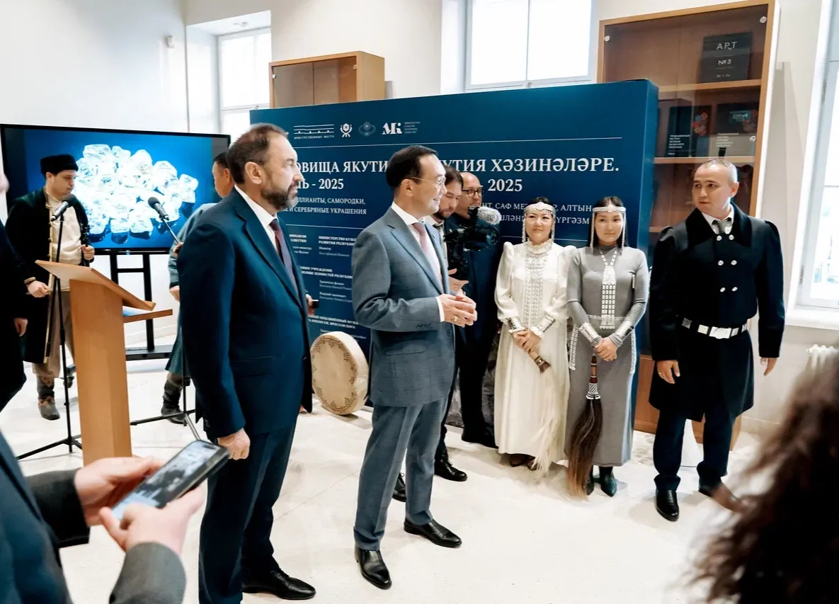 В среду, 27 августа, в Казанском кремле прошло торжественное открытие выездной выставки «Сокровища Якутии. Казань-2025». В экспозиции представлены более 80 уникальных экспонатов из фондов Гохрана Якутии и Музея истории и культуры народов Севера.