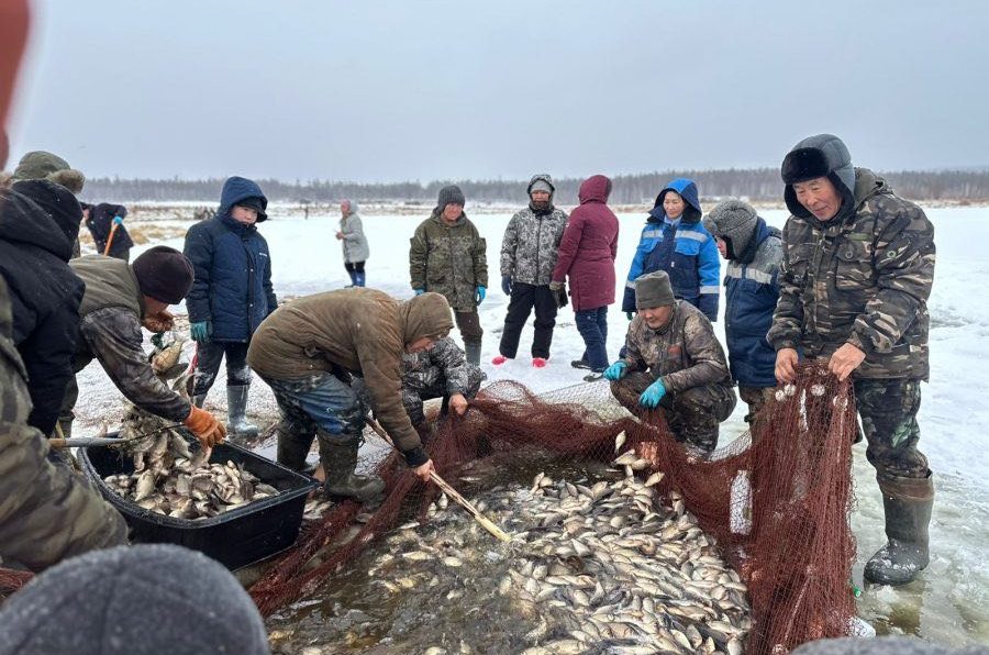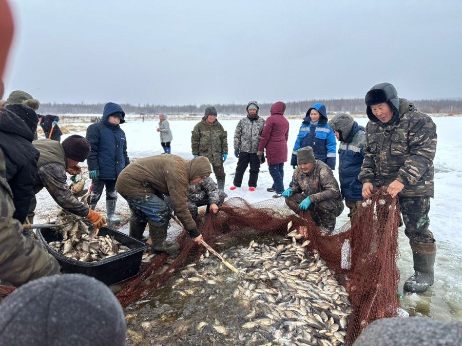 Одной из самых крупных рыбалок стала «Тойон мунха-2025» в мегинском селе Табага. Благодаря рекламе собралось около 1000 человек. Один куль распределяли на 15 человек. На две ухи точно хватит. В Тюнгюлю выловили 247 мешков рыбы.
