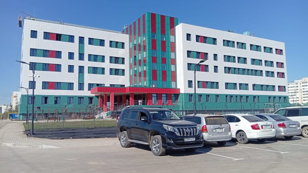 Но расскажем обо всём подробнее. Само здание, по сути, уже построено, внутренняя отделка, по большей части, выполнена, сейчас достраивается вся прилегающая инфраструктура: гаражи, пандусы, проводится заполнение оборудованием палат и кабинетов.