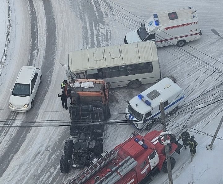 В Якутске после столкновения «КамАЗа» и автобуса №41 пострадали 14 человек