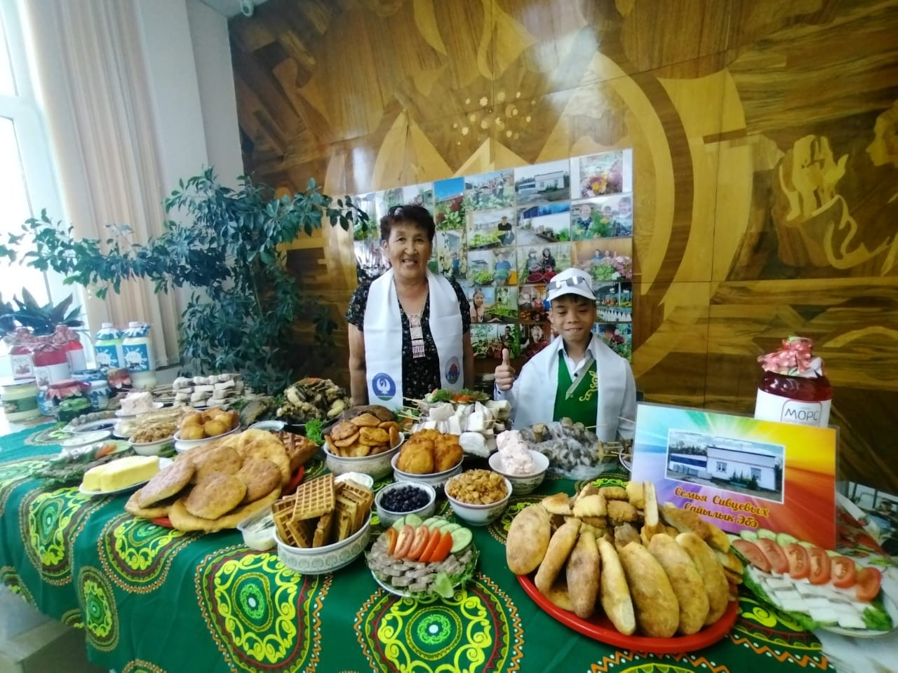 Семья Сивцевых из Намского района также представила свою продукцию на выставке. Матрена Прокопьевна рассказала о том, как они сейчас воспитывают пятерых детей с инвалидностью и ведут собственное хозяйство, обеспечивая семью натуральными продуктами. «Мы живём дружно, в любви и труде,» — говорит она.