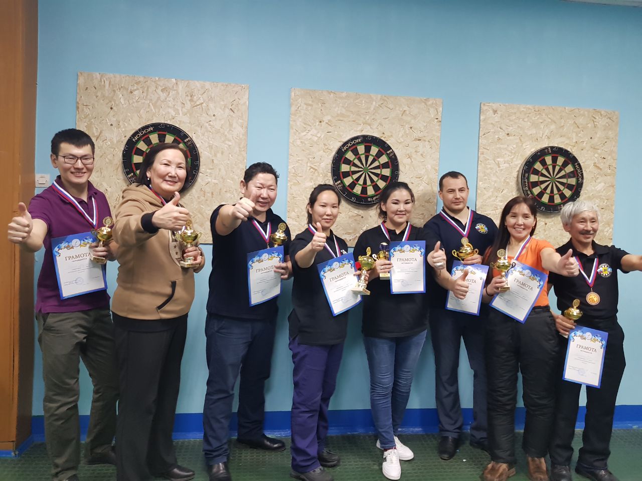 Дартс весьма популярен в Якутии. Один из зачинателей бума дартса известный бильярдист Пётр Макаров (третий слева)