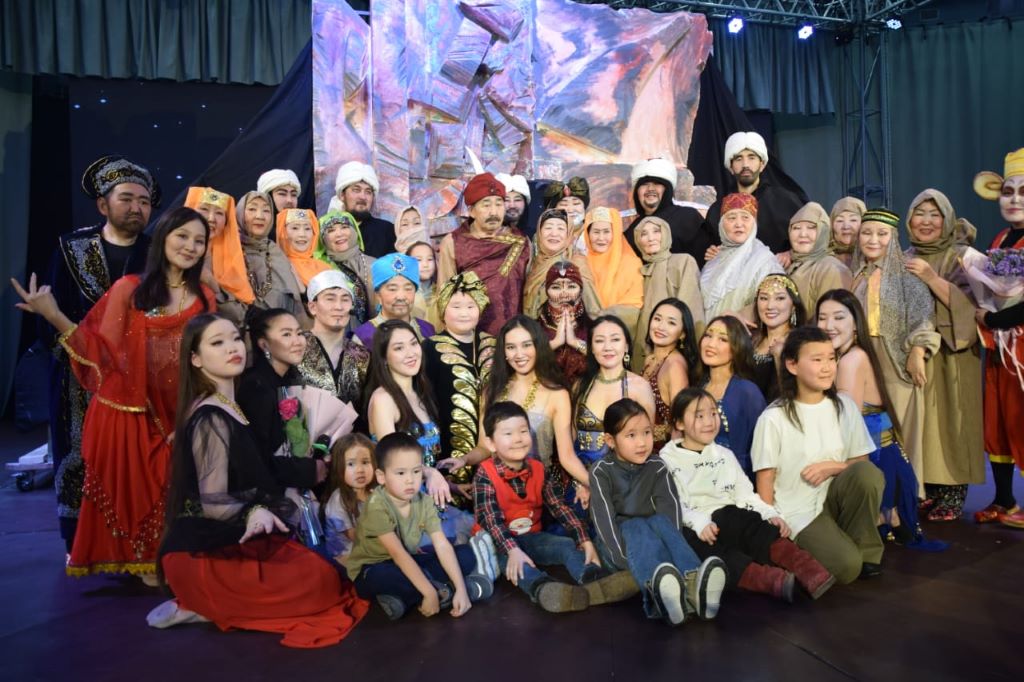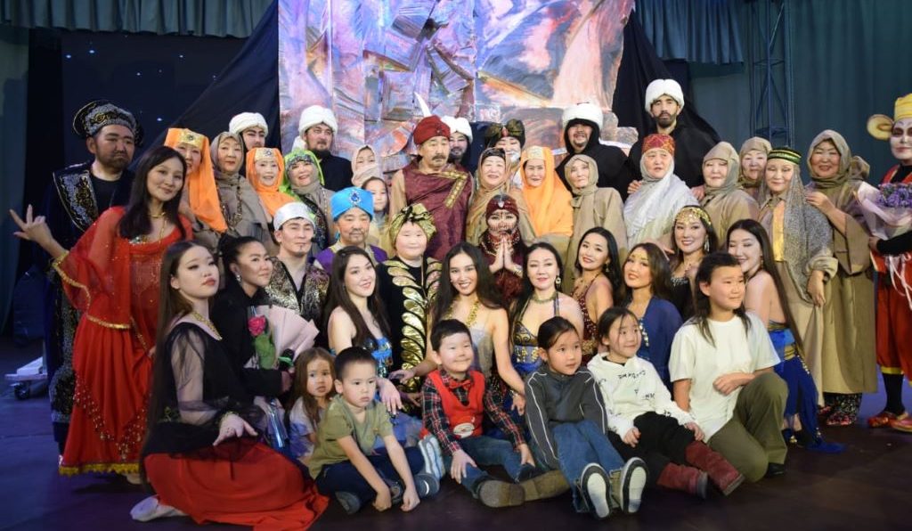 Оно и немудрено: руководитель Сайыына Васильева вынашивала идею этой постановки с 2020 года, еще со времен работы в Оросунском народном театре. И вот час настал! Собрали артистов – ни много ни мало 50 с лишним человек, включая четвероклассника Эрсана Семенова, в массовке участвовали женщины из объединений «Золотой наперсток» и «Айылгы», а восточные танцы поставили девушки из ансамбля «Тосхол». Что касается костюмов и декораций – все было сделано силами коллег и родни.