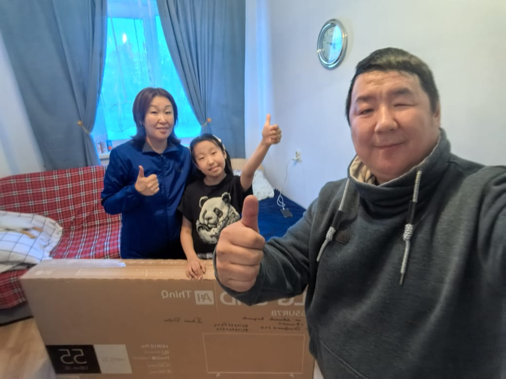 Левчиков обратился к Петру Черкашину и акции «ДелайДоброЧерез», чтобы сделать это доброе дело. Сам доставил на машине телевизор семье Мандаровых. Владислав сказал несколько слов: