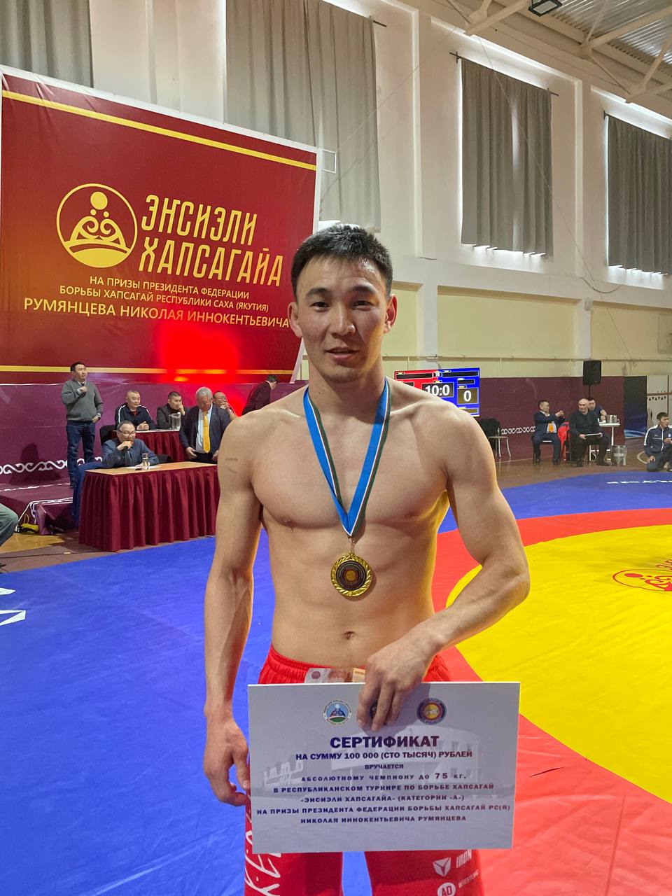 Этой впечатляющей победой Влад Левчиков завоевал титул абсолютного чемпиона турнира «Энсиэли хапсагайа» в весе до 75 кг. В категории свыше 75 кг не было равных нюрбинцу Владимиру Фёдорову — призёру Игр Дыгына. Оба борца стали лучшими и в своих весах, и в абсолюте, заработав по 100 тысяч рублей. Турнир стал последним шансом для борцов попасть на летние Игры Манчаары в Ытык-Кюеле — в каждом весе разыгрывались по шесть заветных путёвок.