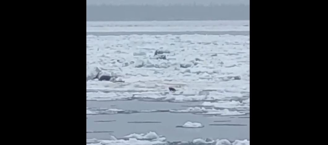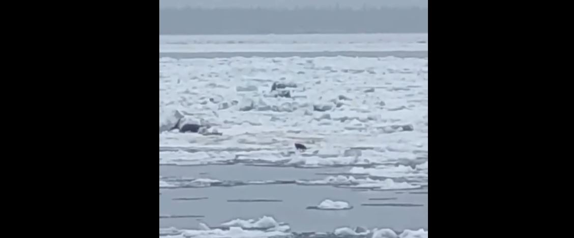 Правда, на кадрах видно только одну собаку, которая прыгает туда-сюда по плывущим льдинам в отчаянной попытке найти выход из ситуации.