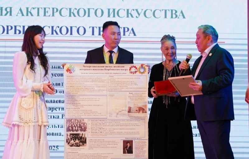 В День артиста юная исследовательница в торжественной обстановке вручила карточки 117 актеров разных поколений Нюрбинского театра руководителю музея-комнаты, народной артистке Якутии Валентине Николаевой. В знак ответной благодарности художественный руководитель Юрий Макаров вручил Таисии благодарственное письмо и золотой билет на спектакли в 2026 году, сообщает пресс-служба театра. Всем бы театрам таких верных поклонников!