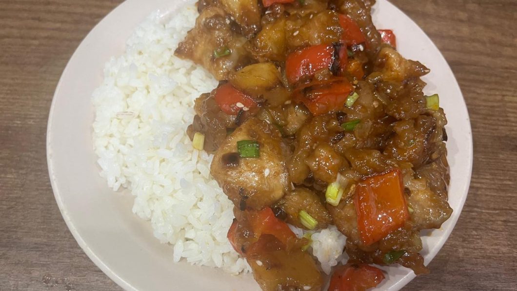Это китайско-американское блюдо возникло в кантонской кухне в XVIII веке. Оно стало популярным в США после того, как в начале XX века китайские иммигранты приехали в США работать на железной дороге. Обычно подаётся с овощами, нередко — с ананасом. Именно такой, второй вариант мы и предлагаем приготовить.