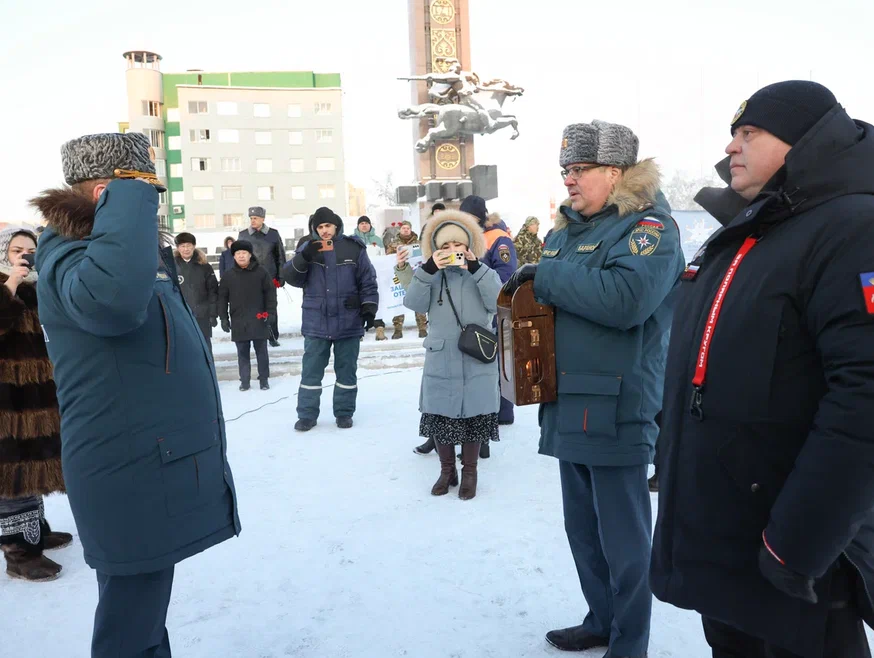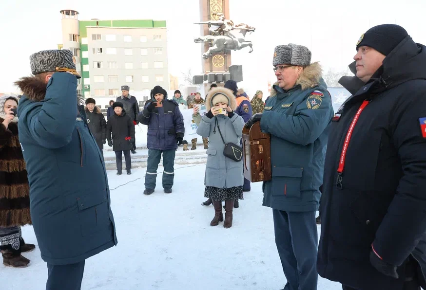 «Президент нашей страны Владимир Владимирович Путин объявил этот год Годом защитника Отечества. В честь 80-й годовщины Великой Победы спасатели пронесут частичку Вечного огня через всю Арктику, передавая её от региона к региону. Эту священную лампаду пронесли уже через 7 субъектов страны, входящих в арктическую зону России. Сегодня мы торжественно принимаем эстафету на территории Республики Саха (Якутия)», — сказал на церемонии Павел Гарин.