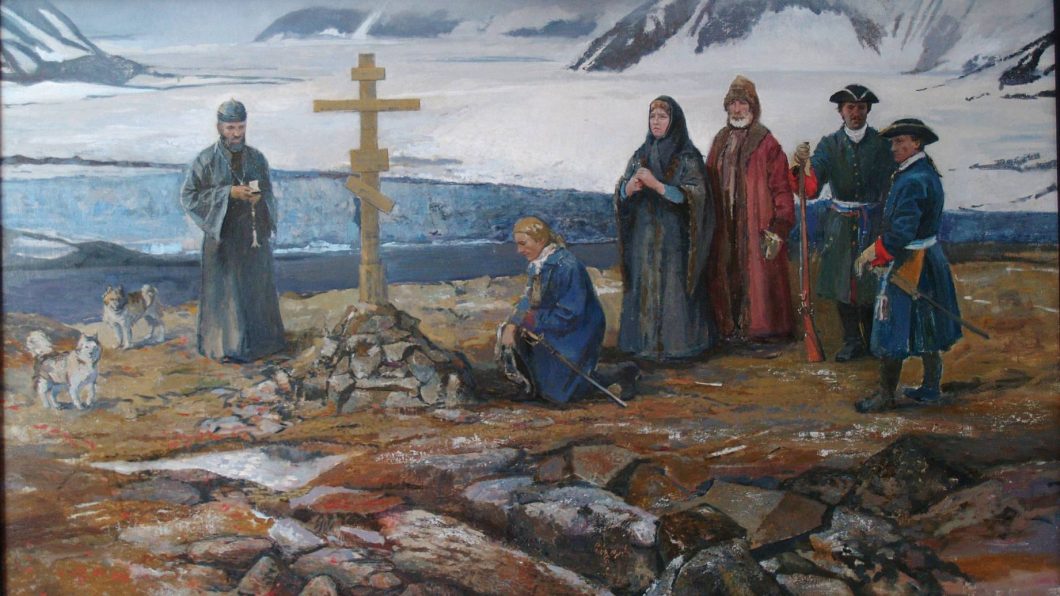 Как отметила художница, картина посвящена истории Второй Камчатской экспедиции под руководством полярного исследователя, лейтенанта Василия Прончищева.
