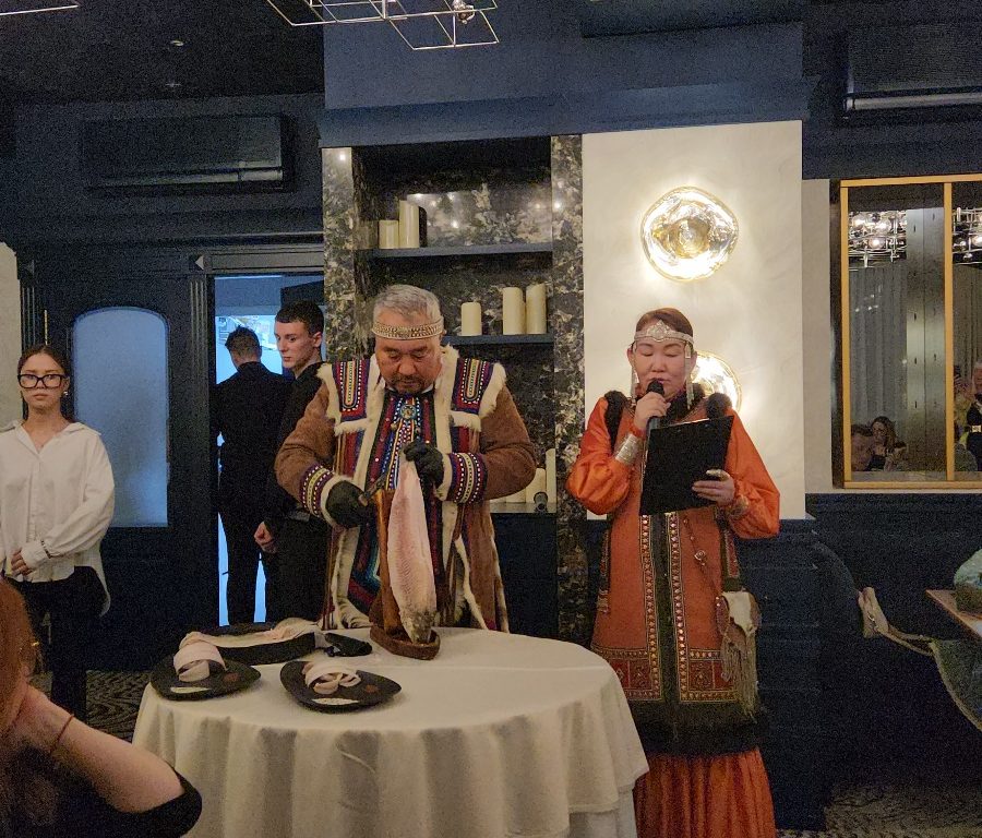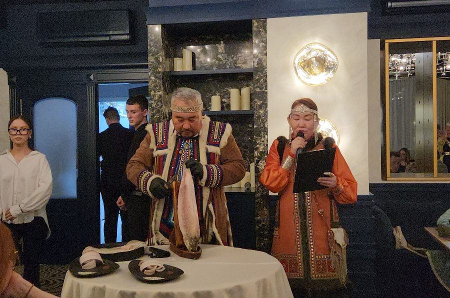 Вечер начался с традиционного алгыса и обряда очищения. Затем гости услышали выступление бренд-шефа Николая Атласова, подробно представившего свою концепцию ужина и якутские гастрономические традиции.