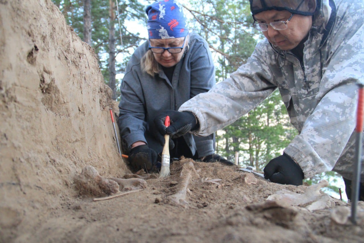 Летние раскопки выявили парное погребение людей, живших в Якутии в конце каменного века. Вдоль берегового обрыва был найден скелет взрослого человека и расчлененные останки подростка, сопровождаемые богатым погребальным инвентарем, включая сложные луки, костяные ножи и кремневые наконечники стрел. Уникальность находки заключается в большом количестве различных типов наконечников, ранее встречавшихся в Центральной Якутии лишь в единичных экземплярах.