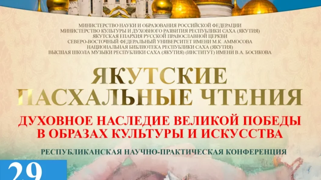 В Историческом зале Национальной библиотеки 29 апреля в 14 часов откроется республиканская научно-практическая конференция «Якутские Пасхальные чтения» на тему «Духовное наследие Великой Победы в образах культуры и искусства». Мероприятие проводится в рамках республиканского Пасхального фестиваля искусств «Золотые купола» и приурочено к Году защитника Отечества, 80-летию Победы в Великой Отечественной войне.