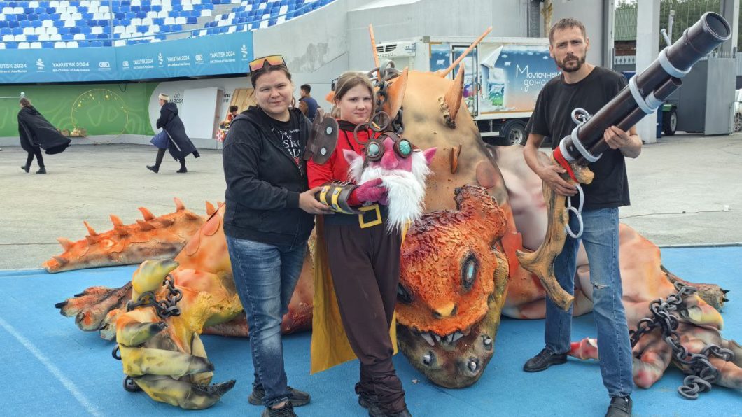 А самым громадным косплеем на фестивале стал Primal Beast вместе со Снайпером из игры Dota 2. Свирепый зверь, напоминающий дракона, как магнит, притягивал желающих сфотографироваться. И автор этой махины, конечно, — еще одна легенда Ykt Geek Fest и победители 2022 года семья Савицких.