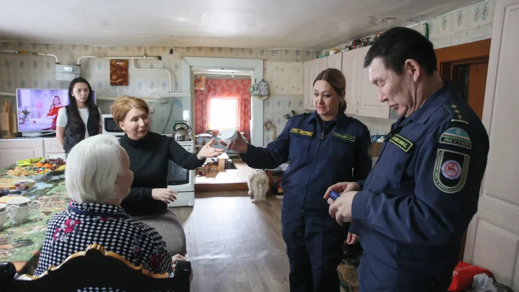 Зампред правительства Якутии Ольга Балабкина помогла установить пожарные извещатели в доме ветерана труда